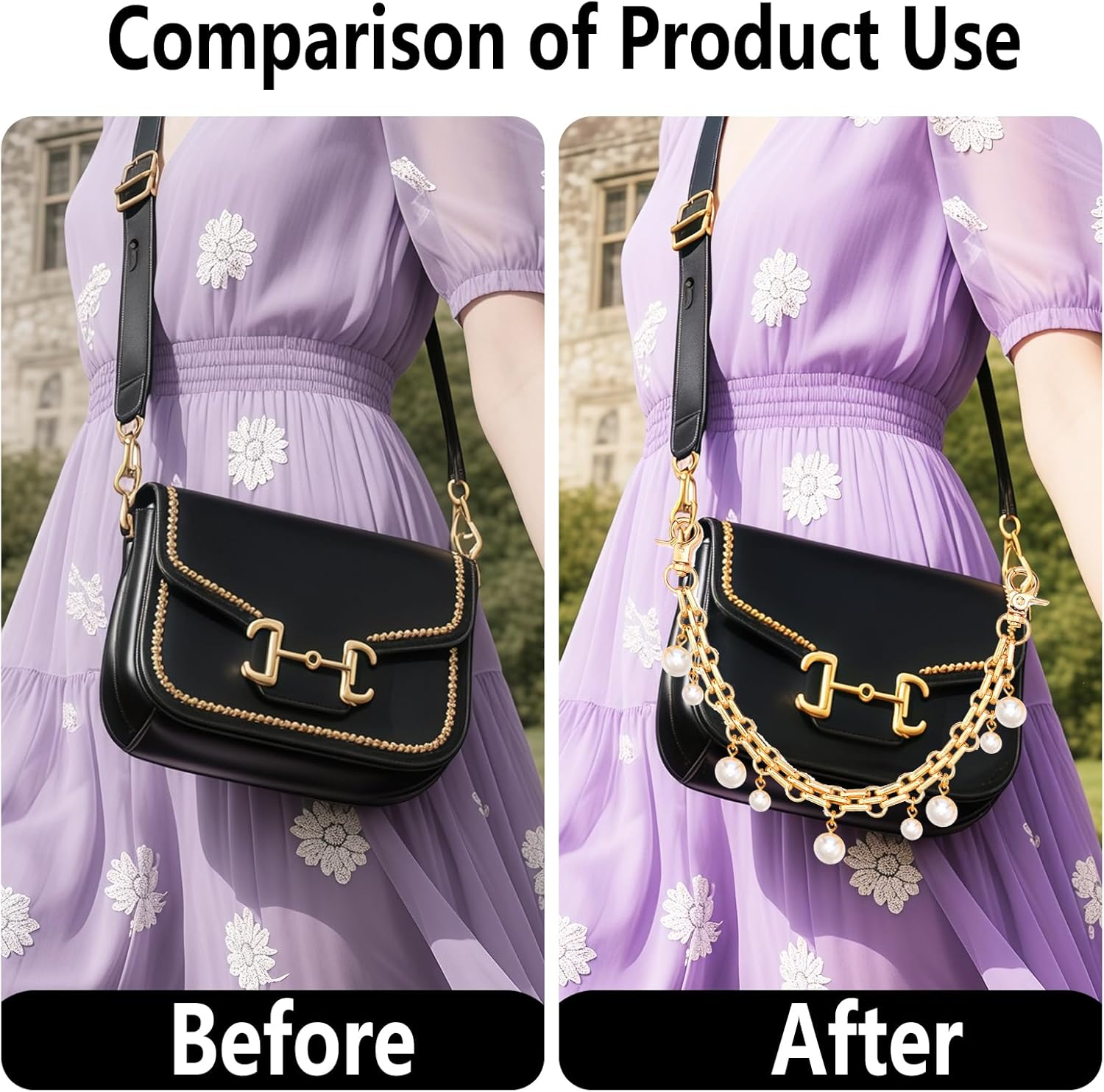 APPLICATION:Extend the Length of purse strap can DIY most handbags or shoulder bags, make your bag more practical and it also could be a bag chain charms accessory which make your bag more attractive.Use the bag extension chain DIY handbag shoulder bag so you will be attracted by its exquisite design when you get it, and if you use it for your backpack decoration, you will become more charming