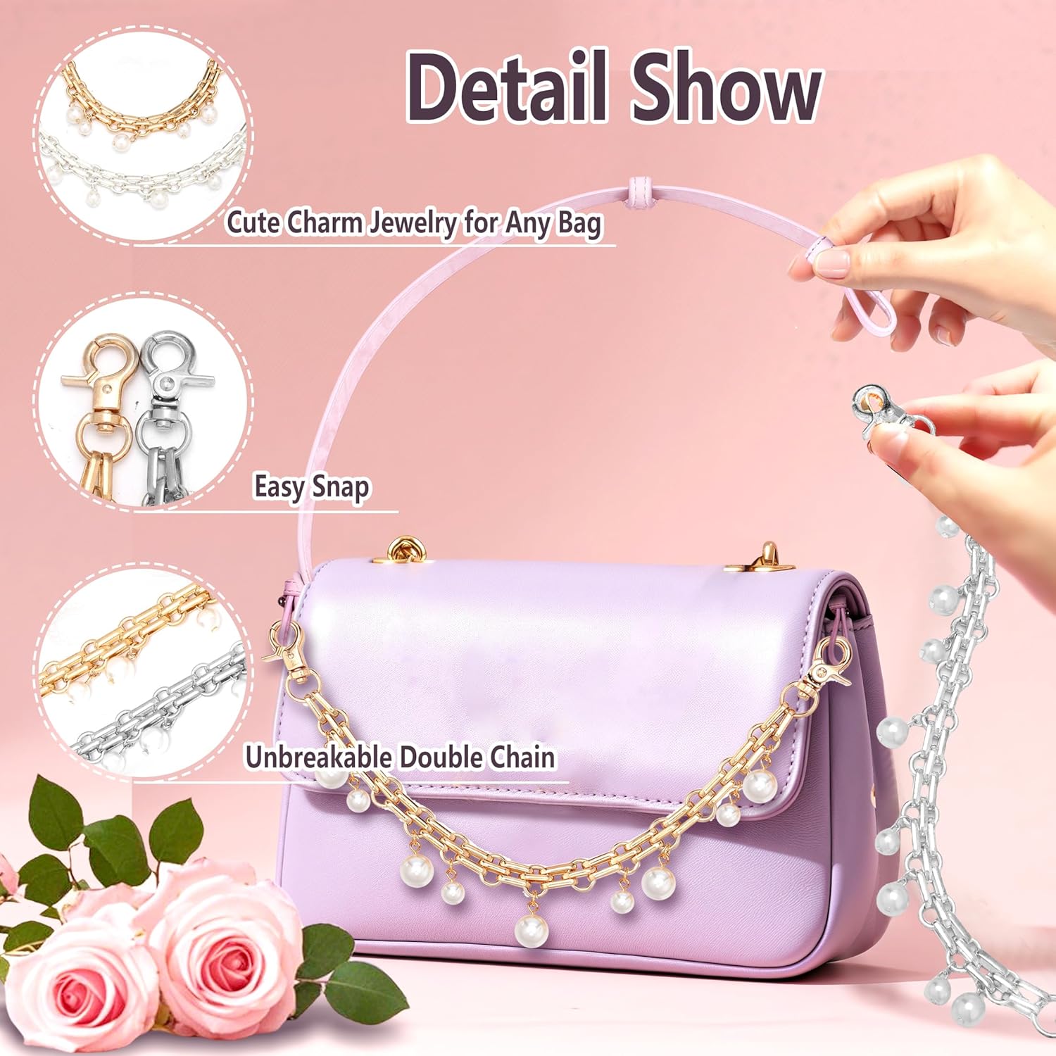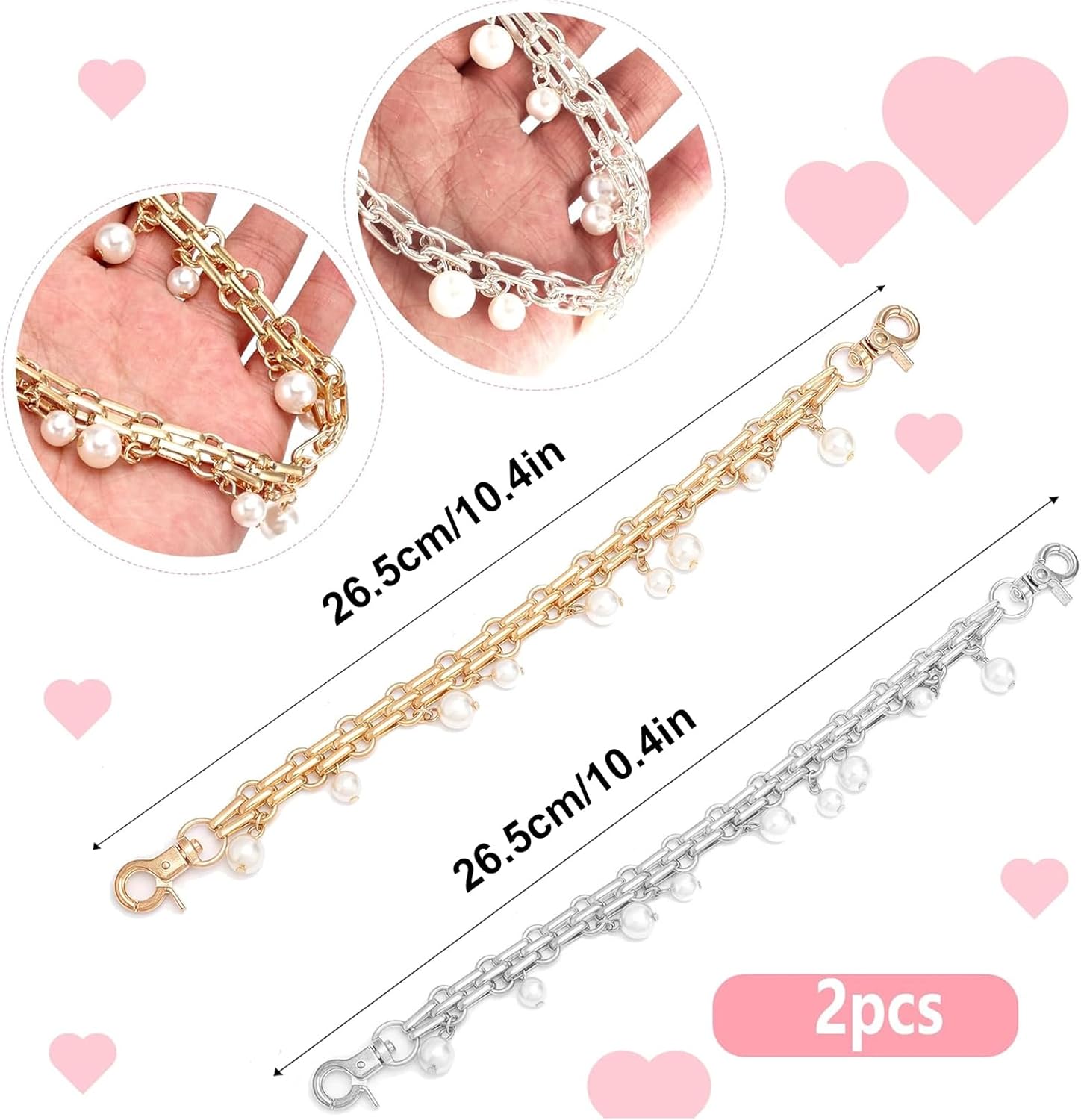 10 reviews for 2Pcs Purse Extender Chain Gold Silver Bag Extender Chain Pearl Purse Strap Extenders Cute Purses Strap Replacement Crossbody Bags Accessories for Women Bag Charms for Handbags Tote Bags Purses Making