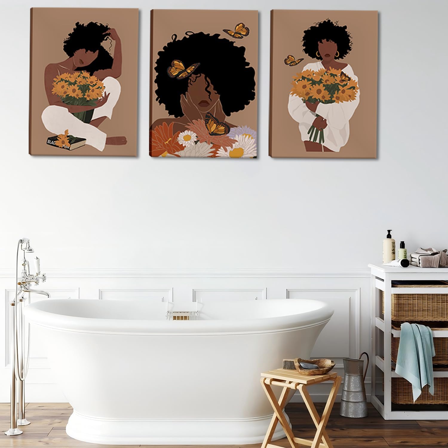 8 reviews for Black Woman Canvas Wall Art Set of 3 – Boho Black Girl Sunflower Posters African American Pictures Fashion Flower Art Prints for Nordic Minimalist Room Bedroom Wall Decor 16”x24”x3 Framed