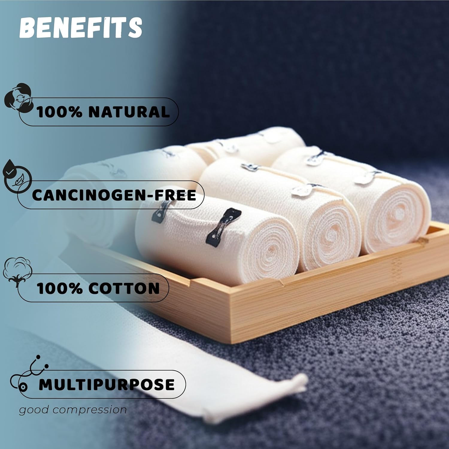 Overall, I’m impressed with the performance of these Migasa elastic bandages. They’re comfortable to wear, breathable, and stay in place well. Each roll comes individually wrapped, making them easy to take on the go. In addition to my home first aid kit, I keep a few in places like my car and gym bag for unexpected injuries.The eight-pack is really a great value. It’s much more affordable than the name-brand options at my local drugstores. I also appreciate that this set came with both three-inch and four-inch wide rolls because it gives me options depending on the area I’m wrapping.My only complaint is about the accuracy of the product description. Several of the seller’s photos indicate that the material is 100% cotton, but the description lists it as a cotton blend, which could be problematic for those with sensitive skin. It also claims the bandages are self-clinging; however, mine came with metal clips and are not self-adherent. It appears that the written description may have been copied from a different product by mistake.The bandages I received work well for my needs, but customers specifically looking for self-adhering bandages that don’t require clips may be disappointed.