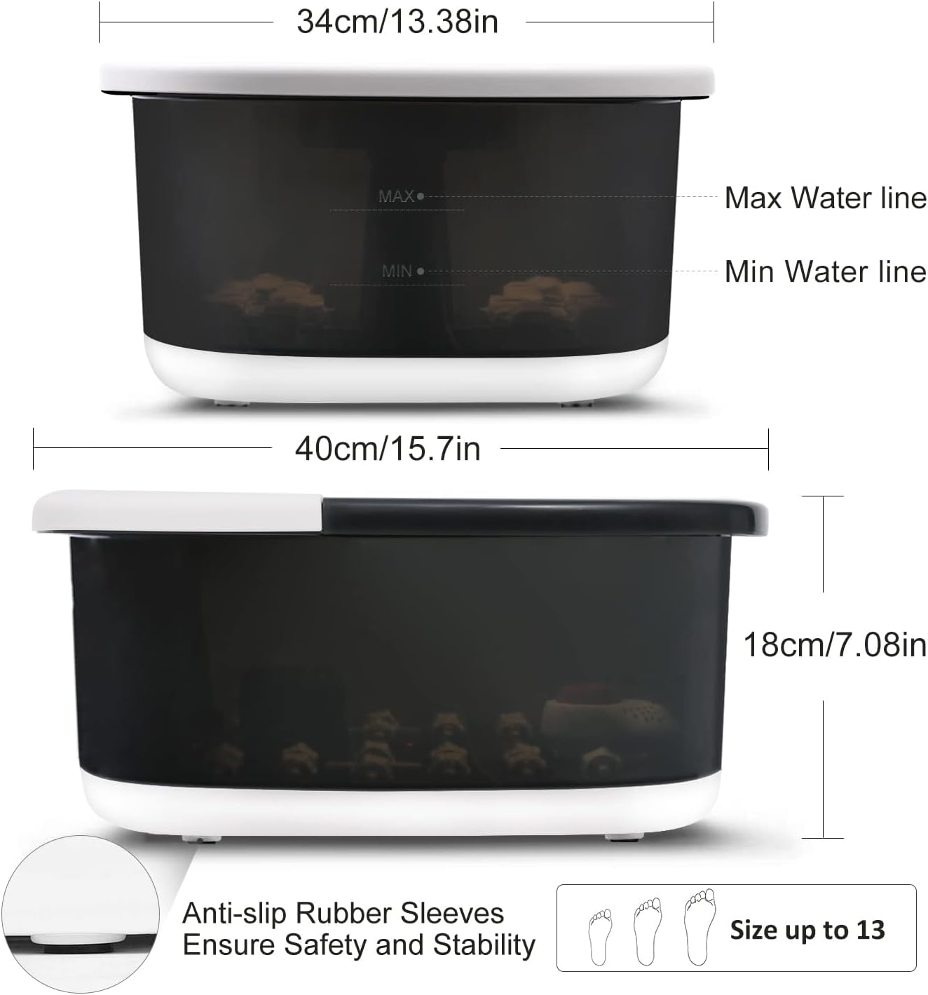 【Fast Heating & Intelligent Temperature Control】 ALISSPOD Foot Spa Bath Massager with Heat Bubbles and Vibration Massage and Jets can heat up water efficiently and maintain water at selected temperature (95-118°F). Its 500W PTC Heater is with safe and secure multi-insulation protection and overheating protection, so you needn’t worry about the safety. For Home Footbath, soaking feet in ALISSPOD foot bucket can not only enhance the therapeutic effect, but also help relieve fatigue, swelling & redness.