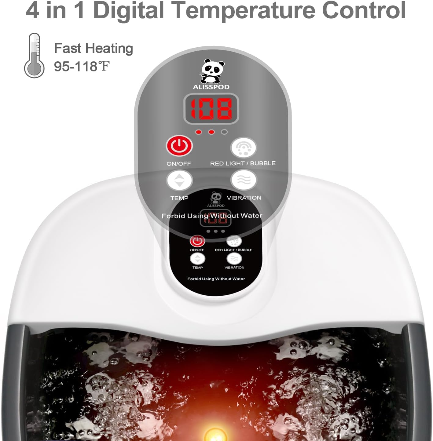 【Vibration Massage & Bubbles Oxygen】The Vibration Function of this pedicure machine can help you relax your feet and bring down your stress & anxiety levels significantly. Soaking feet in ALISSPOD pedicure tub by warm water can effectively dispel cold for relieving flu. Bubble Oxygen can generate oxygen in the water and accelerate water circulation. With bubble jets massaging your feet sole, just like soaking in a hot spring, you can enjoy the relaxed & happy moment with this foot massager spa.