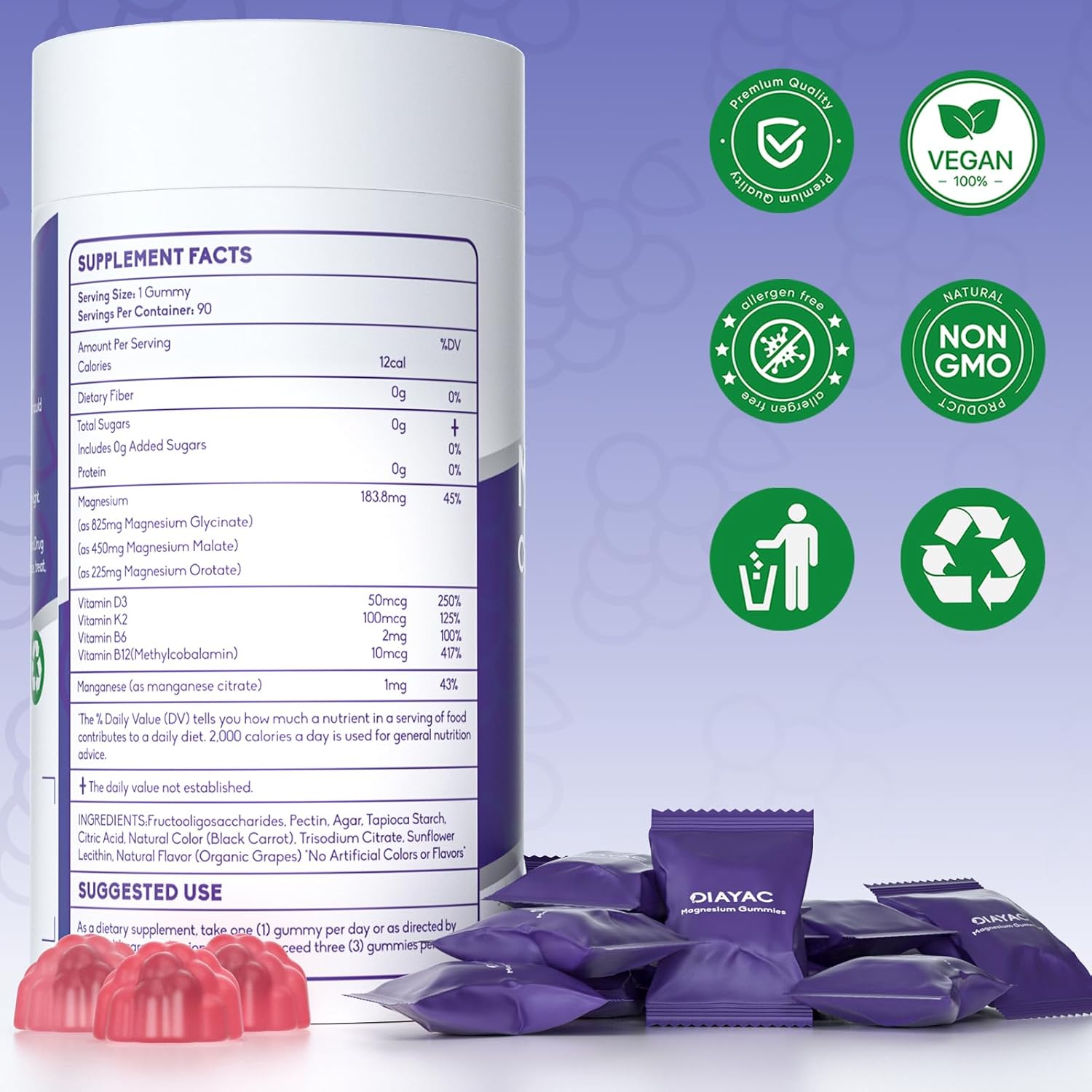 I love everything about this product. I’ve been taking these DIAYAC magnesium gummies for just over a week, and I’m already seeing noticeable results—especially in terms of better sleep and, well… let’s just say things are a lot more regular in the bathroom (in the best way!).Magnesium is definitely having a moment right now, and I can see why. What sets this one apart for me is that it’s a gummy—which makes it so much easier and more enjoyable to take than pills—and it seems to absorb quickly.I usually stay away from gummies because I’m picky about flavors, but this one honestly tastes like a fruit roll-up. It’s not overly sweet or medicinal—just really pleasant. And the individually wrapped servings are a genius touch. I’ve even tossed a few in my purse to share with family and friends because I genuinely love this product that much.It’s also at a fabulous price point for what you get—a full 90-day supply. That’s hard to beat for a supplement that actually delivers noticeable results.If you’re looking for a high-quality, easy-to-take magnesium supplement that tastes good and delivers results, this one is absolutely worth trying.